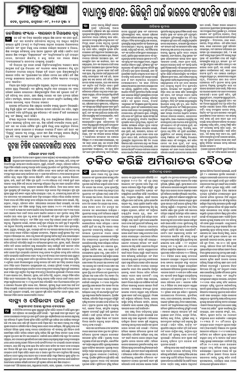 The Matrubhasa is most popular Odia Daily Newspaper in Odisha Page: 4 Page-1Page-2Page-3Page-4Page-5Page-6Page-7Page-8 Page 1Page 2Page 3Page 4Page 5Page 6Page 7Page 8 Thumbnails × The Matrubhasa is most popular Odia Daily Newspaper in Odisha Page-1Page-2Page-3Page-4Page-5Page-6Page-7Page-8 Full PDF << First << 2 3 4 5 >> Last >>